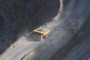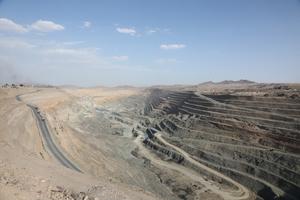 (250507) -- KERMAN, 7 mayo, 2025 (Xinhua) -- Imagen del 1 de mayo de 2025 de camiones transportando mineral de...