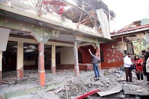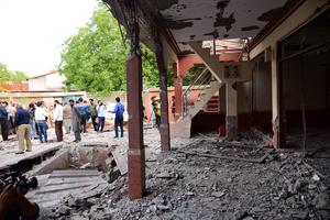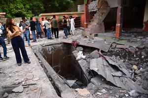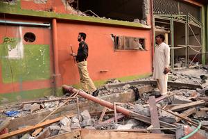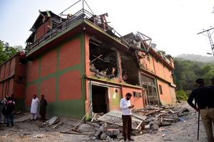 (250507) -- MUZAFFARABAD, 7 mayo, 2025 (Xinhua) -- Personas inspeccionan los daños de un ataque indio con misiles, en Muzaffarabad,...