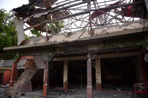 (250507) -- MUZAFFARABAD, 7 mayo, 2025 (Xinhua) -- Imagen del 7 de mayo de 2025 de un edificio dañado por...