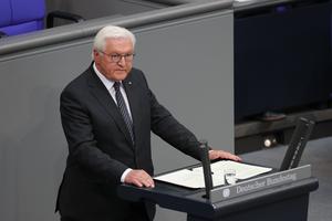 (250508) -- BERLIN, 8 mayo, 2025 (Xinhua) -- El presidente alemán, Frank-Walter Steinmeier, habla durante una ceremonia para conmemorar el...