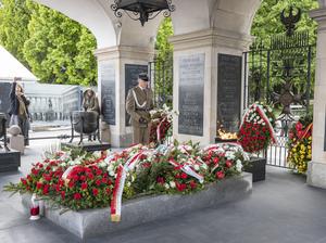 (250508) -- VARSOVIA, 8 mayo, 2025 (Xinhua) -- Una ceremonia para conmemorar el 80 aniversario del fin de la Segunda...