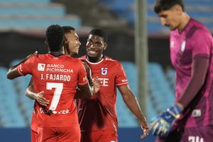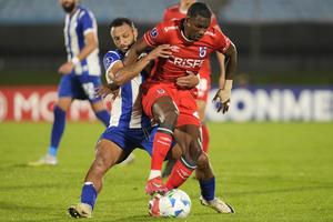 (250508) -- MONTEVIDEO, 8 mayo, 2025 (Xinhua) -- Imagen del 7 de mayo de 2025 del jugador Ismael Díaz (2-i),...