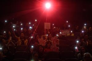 (250509) -- SANTIAGO, 9 mayo, 2025 (Xinhua) -- Imagen del 8 de mayo de 2025 de personas participando en la inauguración de la "Semana de Cine de Shanghai, China" en las instalaciones de la Cineteca Nacional de Chile, en Santiago, capital de Chile. La copiosa lluvia que cayó en Santiago de Chile no logró disuadir al público de asistir al inicio el jueves de la "Semana de Cine de Shanghai, China", que presentará seis películas representativas de esa ciudad, reconocida como la cuna del cine chino. (Xinhua/Jorge Villegas) (jv) (rtg) (ra) (vf)