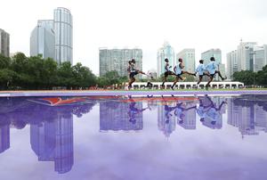 (250509) -- GUANGZHOU, 9 mayo, 2025 (Xinhua) -- Atletas de Botsuana asisten a una sesión de entrenamiento previo al Campeonato...