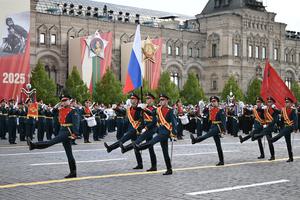 (250509) -- MOSCU, 9 mayo, 2025 (Xinhua) -- Soldados marchan durante un gran desfile para conmemorar el 80° aniversario de...