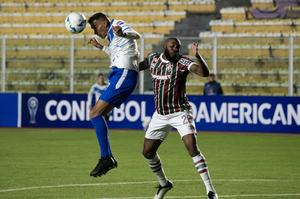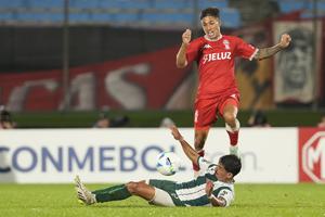 (250509) -- MONTEVIDEO, 9 mayo, 2025 (Xinhua) -- Imagen del 8 de mayo de 2025 del jugador Lucas Rodríguez (abajo),...
