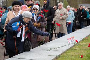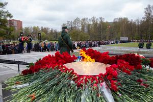 (250509) -- SAN PETERSBURGO, 9 mayo, 2025 (Xinhua) -- Imagen del 8 de mayo de 2025 de personas depositando flores...