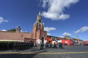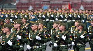 (250509) -- MOSCU, 9 mayo, 2025 (Xinhua) -- Soldados se preparan para asistir a un gran desfile para conmemorar el...
