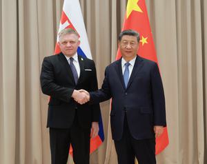 (250509) -- MOSCU, 9 mayo, 2025 (Xinhua) -- El presidente chino, Xi Jinping, se reúne con el primer ministro eslovaco,...