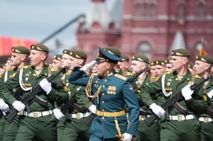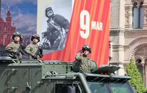 (250509) -- MOSCU, 9 mayo, 2025 (Xinhua) -- Soldados asisten a un gran desfile para conmemorar el 80° aniversario de...