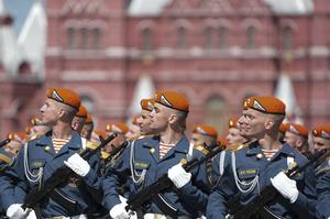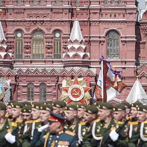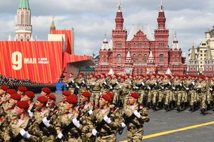 (250509) -- MOSCU, 9 mayo, 2025 (Xinhua) -- Soldados asisten a un gran desfile para conmemorar el 80º aniversario de...