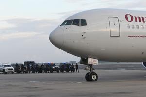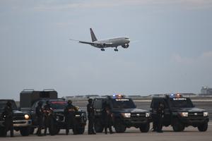 (250509) -- LA GUAIRA, 9 mayo, 2025 (Xinhua) -- Un avión con ciudadanos venezolanos deportados desde Estados Unidos a bordo...