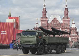(250509) -- MOSCU, 9 mayo, 2025 (Xinhua) -- Un vehículo blindado que transporta drones circula durante un gran desfile para...