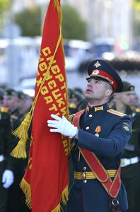 (250509) -- MOSCU, 9 mayo, 2025 (Xinhua) -- Militares se preparan previo a un desfile militar con motivo del 80º...