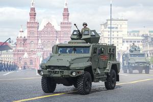 (250509) -- MOSCU, 9 mayo, 2025 (Xinhua) -- Vehículos blindados circulan durante un gran desfile para conmemorar el 80º aniversario...