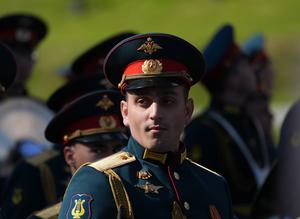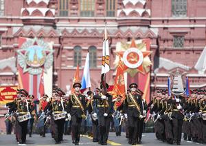 (250509) -- MOSCU, 9 mayo, 2025 (Xinhua) -- Una banda militar se prepara para asistir a un gran desfile para...