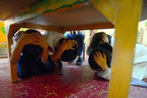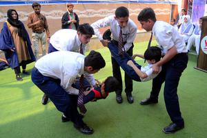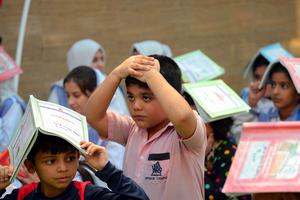 (250510) -- KARACHI, 10 mayo, 2025 (Xinhua) -- Imagen del 9 de mayo de 2025 de estudiantes paquistaníes participando en...