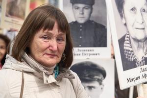 (250510) -- VLADIVOSTOK, 10 mayo, 2025 (Xinhua) -- Imagen del 9 de mayo de 2025 de una participante derramando lágrimas...