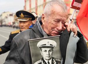 (250510) -- VLADIVOSTOK, 10 mayo, 2025 (Xinhua) -- Imagen del 9 de mayo de 2025 de un participante derramando lágrimas...