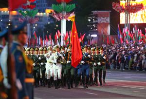(250510) -- MINSK, 10 mayo, 2025 (Xinhua) -- Imagen del 9 de mayo de 2025 de un contingente de la...