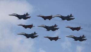 (250509) -- MOSCU, 9 mayo, 2025 (Xinhua) -- Aeronaves vuelan en formación durante un gran desfile para conmemorar el 80° aniversario de la victoria en la Gran Guerra Patriótica de la Unión Soviética, en Moscú, Rusia, el 9 de mayo de 2025. (Xinhua/Ding Haitao) (rtg) (ra) (vf)