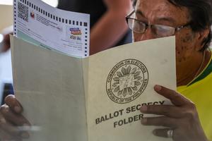 (250512) -- CIUDAD QUEZON, 12 mayo, 2025 (Xinhua) -- Personas emiten su voto en un colegio electoral, en Ciudad Quezon,...