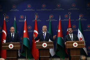 (250512) -- ANKARA, 12 mayo, 2025 (Xinhua) -- El ministro de Relaciones Exteriores turco, Hakan Fidan (c), el ministro de...