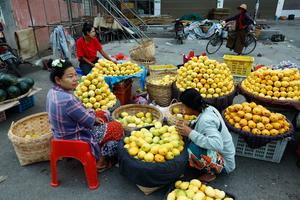 (250512) -- MANDALAY, 12 mayo, 2025 (Xinhua) -- Imagen de 11 de mayo de 2025 de personas vendiendo mangos en...