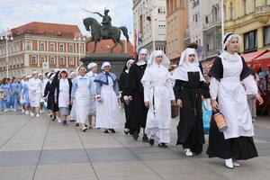 (250512) -- ZAGREB, 12 mayo, 2025 (Xinhua) -- Un desfile de enfermeras croatas con uniformes históricos se lleva a cabo...