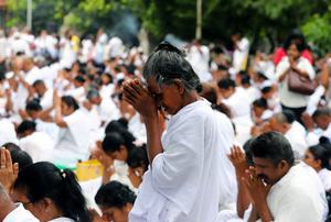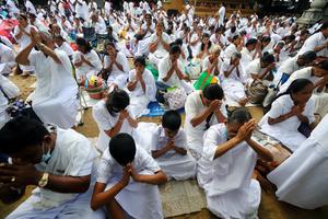 (250512) -- COLOMBO, 12 mayo, 2025 (Xinhua) -- Personas participan en una celebración del Día de Vesak, en Colombo, Sri...