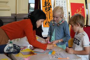 (250511) -- CANBERRA, 11 mayo, 2025 (Xinhua) -- Niños elaboran artesanías en el área de exposiciones culturales durante las celebraciones...