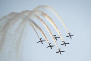 (250511) -- VELIKA GORICA, 11 mayo, 2025 (Xinhua) -- El equipo de exhibición de acrobacias aéreas de la Fuerza Aérea...