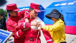 (250511) -- BEIJING, 11 mayo, 2025 (Xinhua) -- Imagen del 9 de mayo de 2025 de bomberos realizando una demostración...