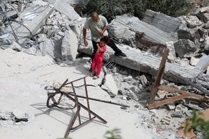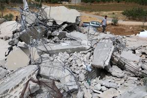 (250512) -- HEBRÓN, mayo 12, 2025 (Xinhua) -- Palestinos son vistos entre escombros después de que excavadoras israelíes demolieran una...