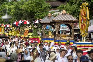 (250512) -- MAGELANG, 12 mayo, 2025 (Xinhua) -- Personas participan en un desfile cultural durante las celebraciones del Día de...
