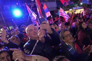 (250512) -- MONTEVIDEO, 12 mayo, 2025 (Xinhua) -- Imagen del 11 de mayo de 2025 de simpatizantes escuchando al intendente...