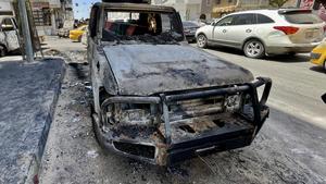 (250513) -- TRIPOLI, 13 mayo, 2025 (Xinhua) -- Imagen del 13 de mayo de 2025 de un coche dañado durante...