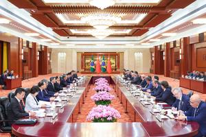 (250513) -- BEIJING, 13 mayo, 2025 (Xinhua) -- Zhao Leji, presidente del Comité Permanente de la Asamblea Popular Nacional, se...