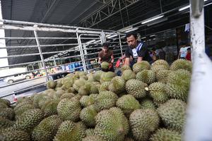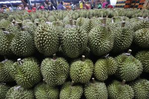 (250514) -- CHANTHABURI, 14 mayo, 2025 (Xinhua) -- Imagen del 13 de mayo de 2025 de durianes vistos en el...