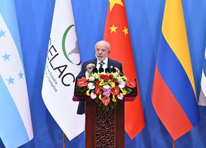 (250513) -- BEIJING, 13 mayo, 2025 (Xinhua) -- El presidente brasileño, Luiz Inácio Lula da Silva, pronuncia un discurso en...