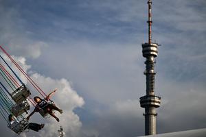 (250514) -- ALMATY, 14 mayo, 2025 (Xinhua) -- Imagen del 13 de mayo de 2025 de personas experimentando instalaciones de...