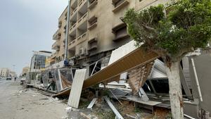 (250514) -- TRIPOLI, 14 mayo, 2025 (Xinhua) -- Imagen del 14 de mayo de 2025 de un edificio dañado durante...