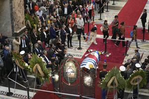(250514) -- MONTEVIDEO, 14 mayo, 2025 (Xinhua) -- Personas asisten al velatorio del expresidente uruguayo, José "Pepe" Mujica, en el...