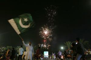 (250512) -- MULTÁN, 12 mayo, 2025 (Xinhua) -- Paquistaníes festejan después del cese al fuego entre Pakistán e India, en Multán, Pakistán, el 12 de mayo de 2025. Mientras se mantiene un tenso cese al fuego entre los vecinos con armas nucleares, Pakistán e India, tras semanas de hostilidades, los residentes de la capital paquistaní están expresando alivio y resiliencia, agradecidos de que se haya evitado una escalada, pero orgullosos de la respuesta militar mesurada de su país.(Xinhua/Mansoor Abbas) (rtg) (ah) (ce)