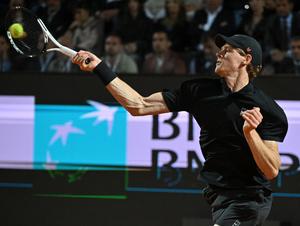 (250517) -- ROMA, 17 mayo, 2025 (Xinhua) -- Imagen del 16 de mayo de 2025 de Jannik Sinner devolviendo la...