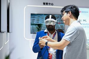 (250516) -- WUHAN, 16 mayo, 2025 (Xinhua) -- Un visitante experimenta un dispositivo de realidad virtual en la 20 Exposición...