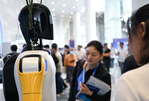 (250516) -- WUHAN, 16 mayo, 2025 (Xinhua) -- Visitantes observan un robot humanoide en la 20 Exposición Internacional de Optoelectrónica...