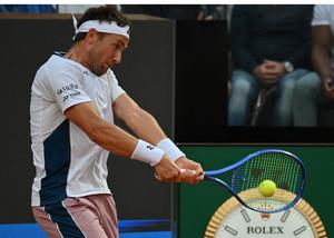 (250516) -- ROMA, 16 mayo, 2025 (Xinhua) -- Imagen del 15 de mayo de 2025 de Casper Ruud devolviendo la...