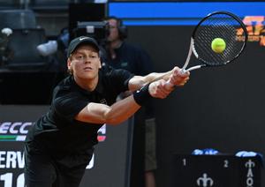(250516) -- ROMA, 16 mayo, 2025 (Xinhua) -- Imagen del 15 de mayo de 2025 de Jannik Sinner devolviendo la...