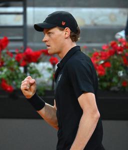 (250516) -- ROMA, 16 mayo, 2025 (Xinhua) -- Imagen del 15 de mayo de 2025 de Jannik Sinner festejando un...